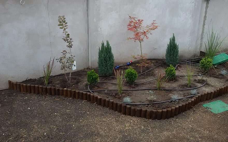 Pripremni radovi, ugradnja zalivnog sistema, setva semena trave, izrada alpinetuma i sadnja biljaka, privatno dvorište u Borči